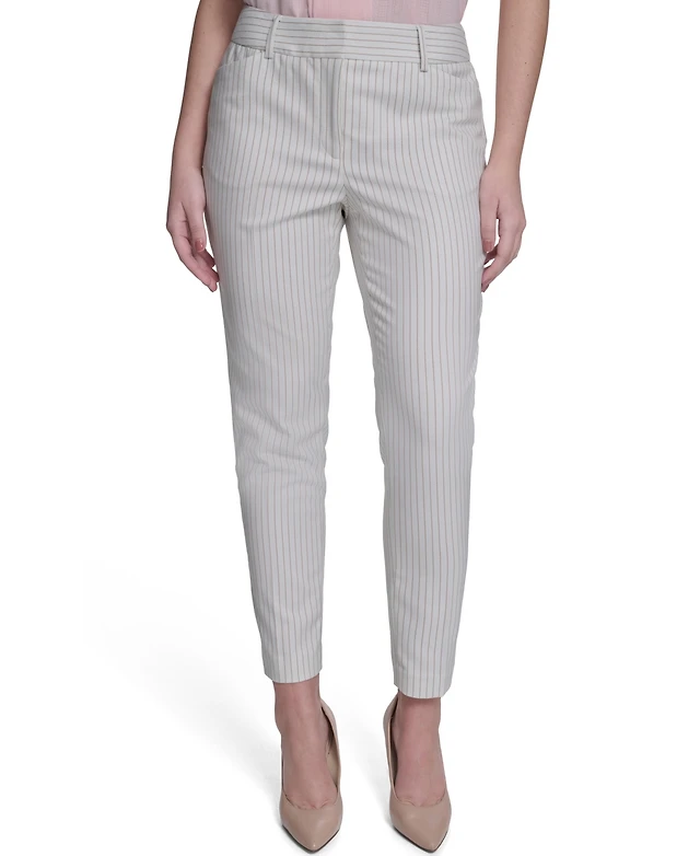 Cable & Gauge Women's Stripe Slim Fit Pull On Cropped Pant