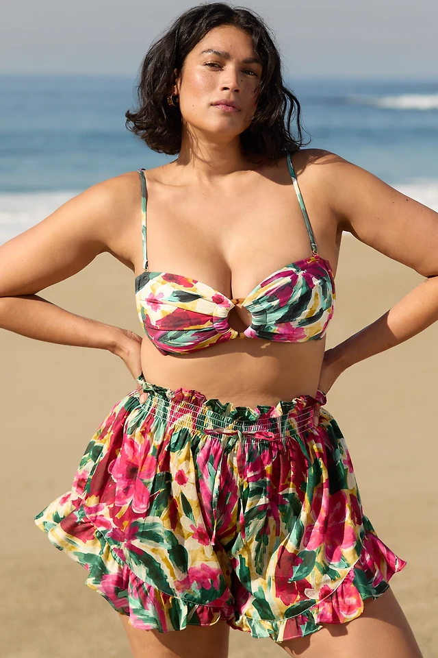 Montce Plus Avocado Floral Tori Ties Bandeau Bikini Top