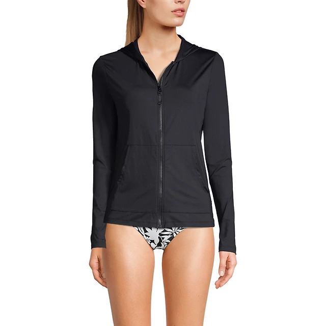 Lands' End Women's SunShade Upf 50 Long Sleeve Hooded Full Zip Rash Guard