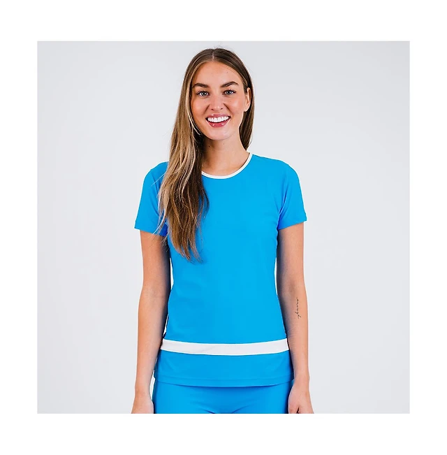 Calypsa Women's Short Sleeve Color Block Rash Guard