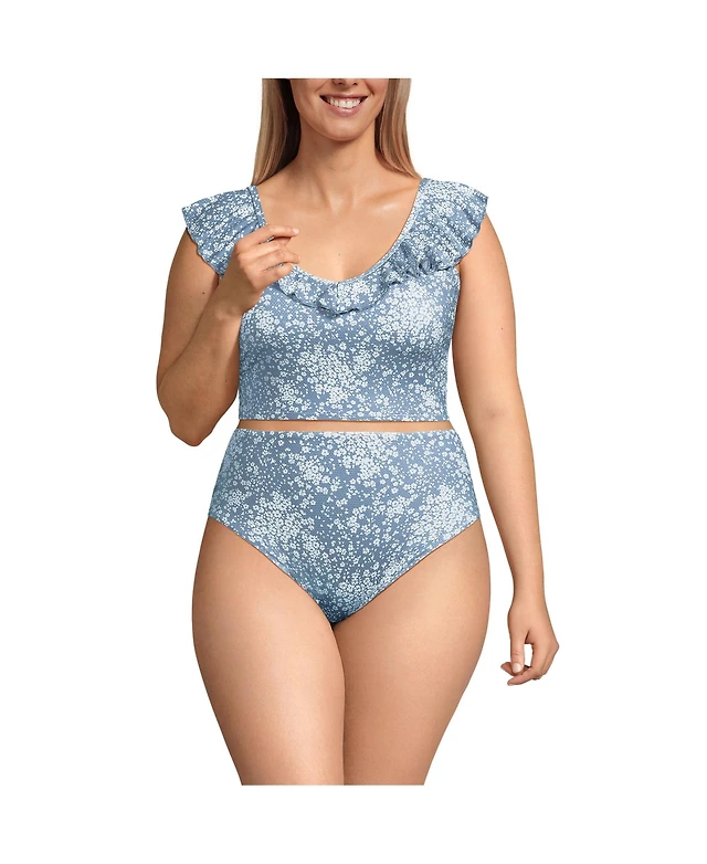Lands' End Women's Long Torso Ruffle Fauxkini One Piece Swimsuit