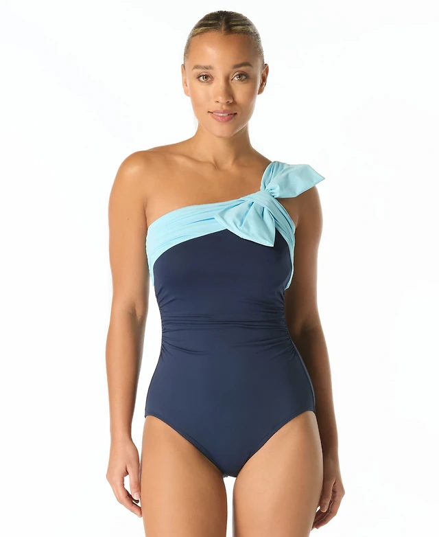Carmen Marc Valvo Women's One-Shoulder Bow One-Piece Swimsuit