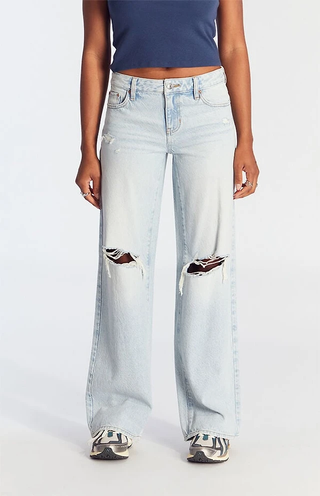 Pacsun Casey Fray Low Rise Baggy Jeans Ripped Light Indigo