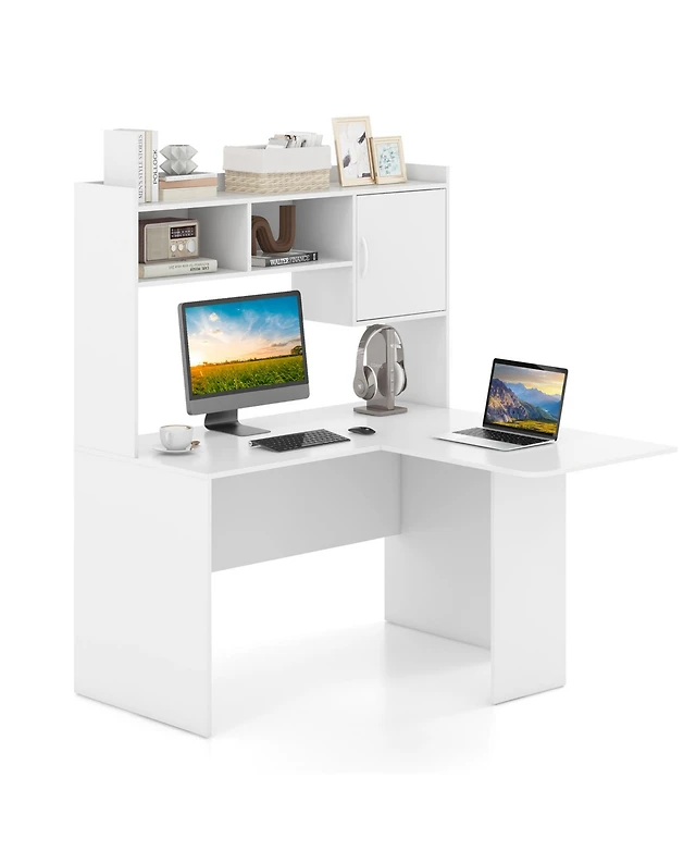 Tribesigns L-Shaped Computer Desk with Drawers and Shelves, Reversible White Corner Office Desk with Storage Cabinet, Study Writing Table for Home Off