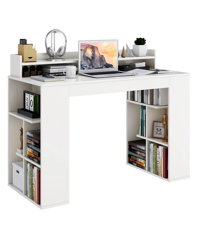 Computer Desk 55" with Power Outlet and Storage Shelves