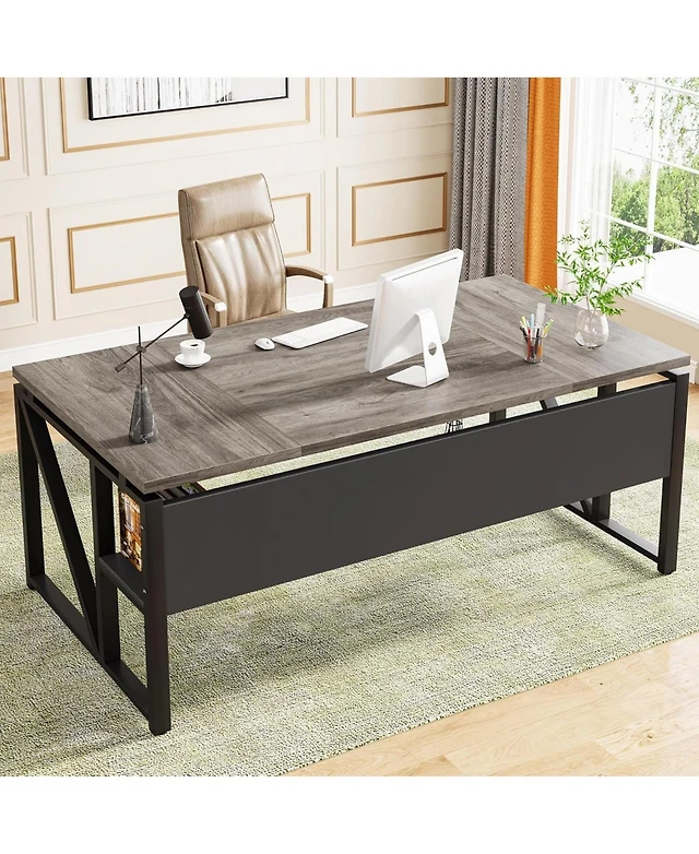 Tribesigns 70.8" Executive Desk with 55" File Cabinet, Modern L Shaped Computer Storage Shelves and Large f