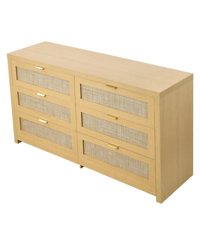 gaomon Rattan 6 Drawer Dresser for Bedroom, Large Double Dresser with Deep Drawers, Modern Chest Organizer
