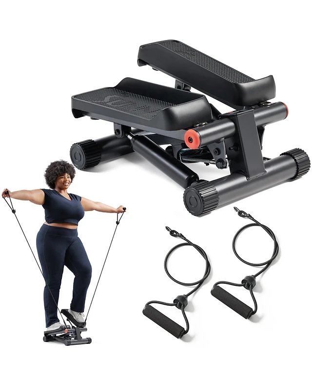 Sunny Health & Fitness Mini Stepper, Low-Impact Stair Step Cardio Equipment with Resistance Bands, Performance Digital Monitor, and SunnyFit App Bluet