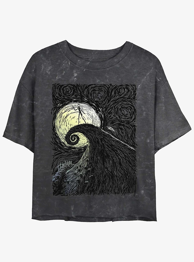 Disney The Nightmare Before Christmas Jack On Spiral Hill Tie-Dye Womens Crop T-Shirt
