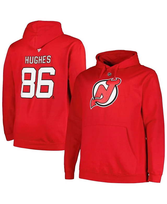 Men's Profile Jack Hughes Red New Jersey Devils Big and Tall Name Number Pullover Hoodie