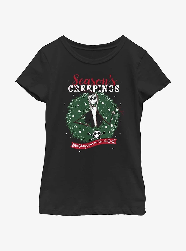 Disney The Nightmare Before Christmas Santa Jack Season's Creepings Wreath Youth Girls T-Shirt