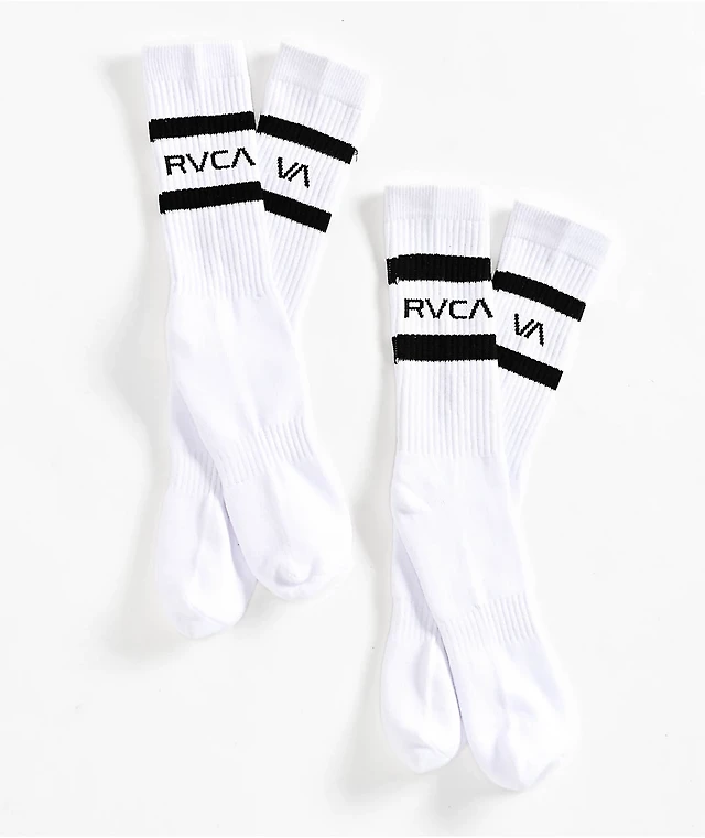 RVCA White & Black Stripe 2 Pack Crew Socks