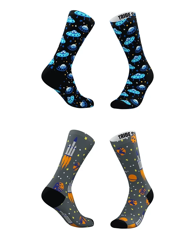 Men's and Women's Blue Blastoff Socks, Set of 2