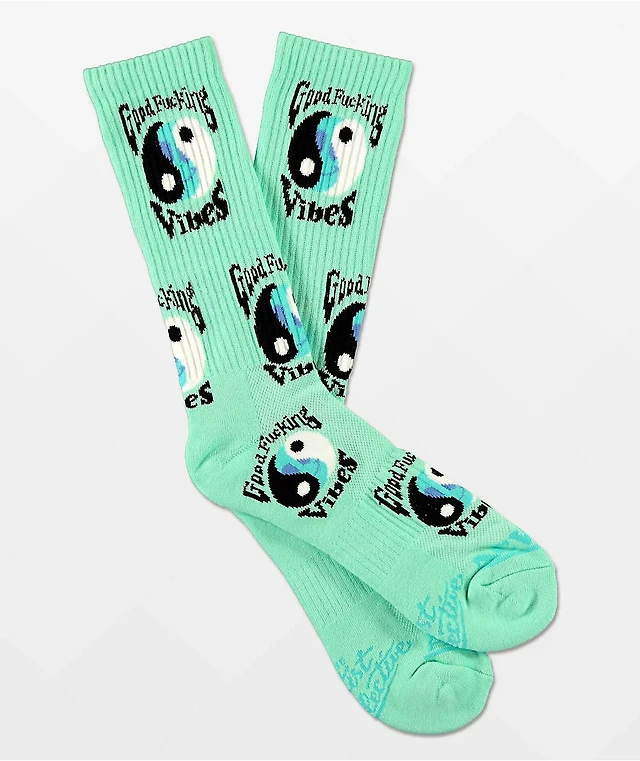 Artist Collective Good F'ing Vibes Seafoam Crew Socks