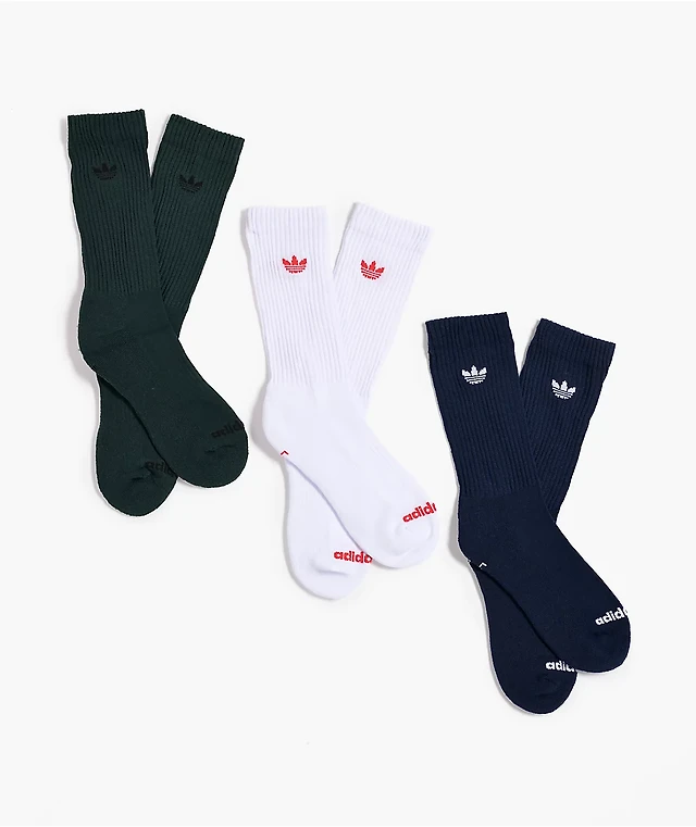 adidas Originals Trefoil 3 Pack Green, White & Blue Crew Socks