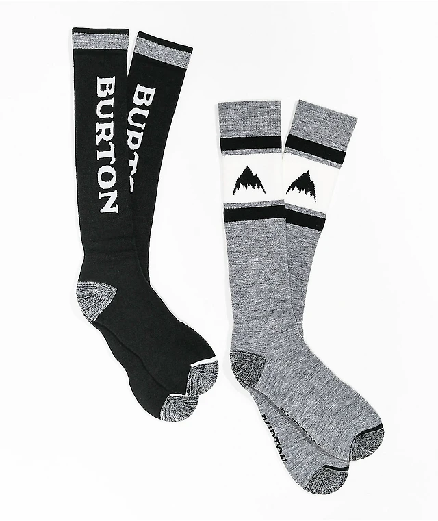 Burton Weekend Midweight Black & Grey 2 Pack Snowboard Socks