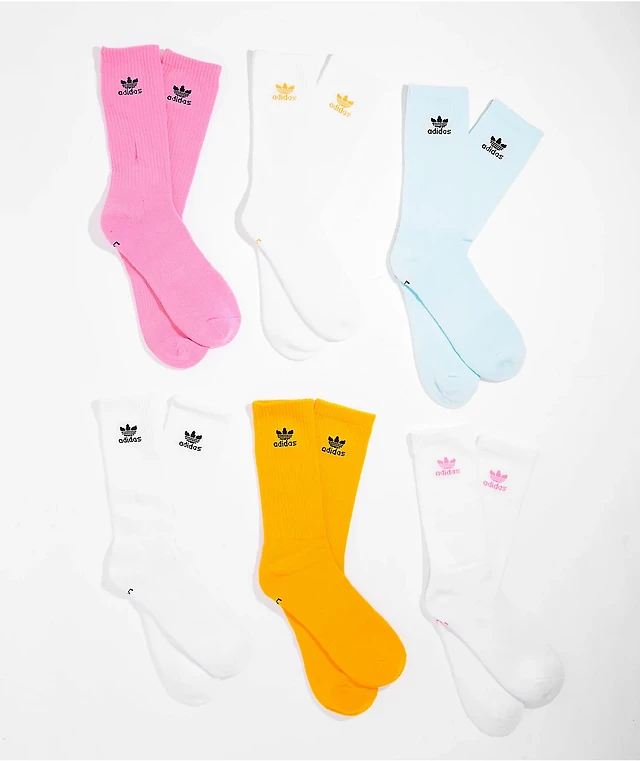 adidas Trefoil White, Pink & Blue 6 Pack Crew Socks