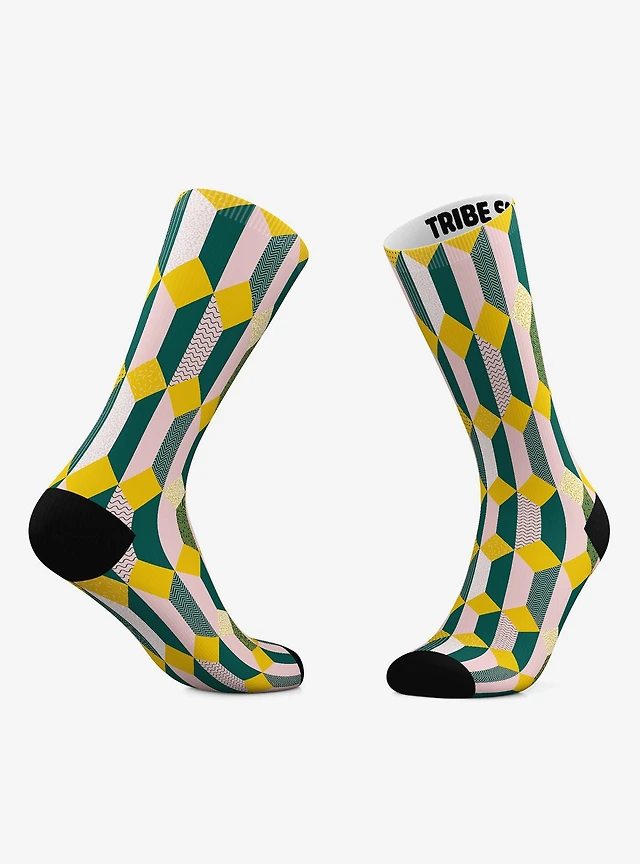 Geometric Diamond And Geometric Tiles Crew Socks 2 Pair