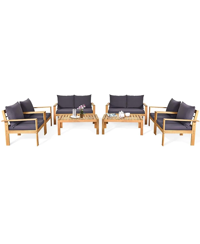 8PCS Patio Furniture Set Acacia Wood Thick Cushion Loveseat Sofa