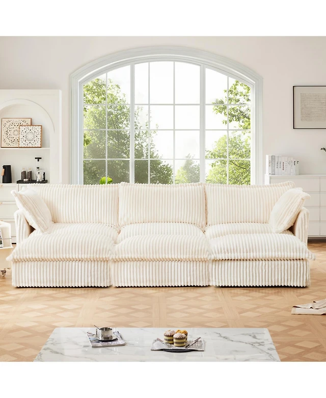 Streamdale Furniture 114" Soft Fluffy Plush Modular Sectional Sofa with Ottoman