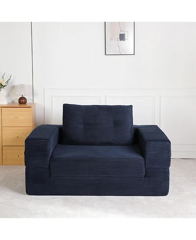 Boyel Living 72.8" Corduroy Sleeper Sofa Loveseat with Full Mattress, Two Usb Ports, Cup Holders, Side Pockets and a Phone Holder