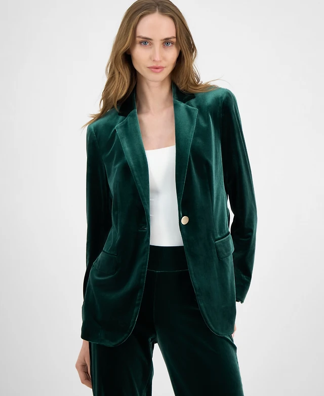Jones New York Women's Quilted Velvet Snap-Front Jacket