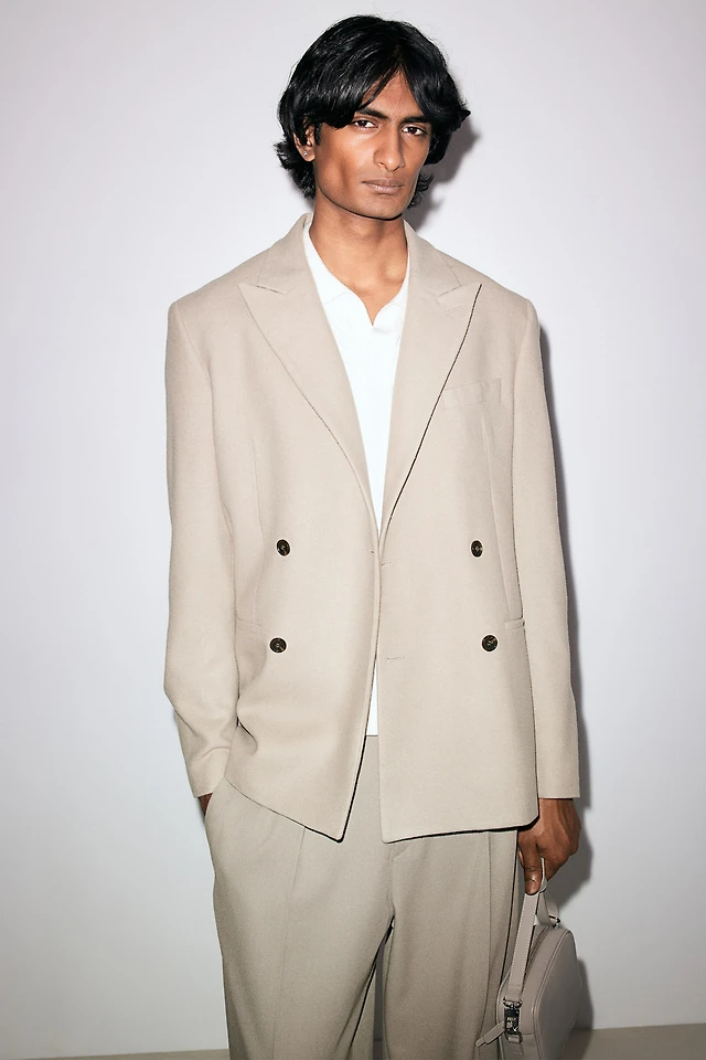 Regular Fit Wool-Blend Double-Breasted Jacket