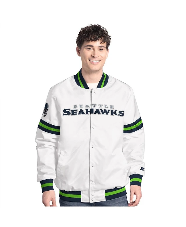 Starter Men's White Seattle Seahawks Scout Full-Snap Varsity Jacket