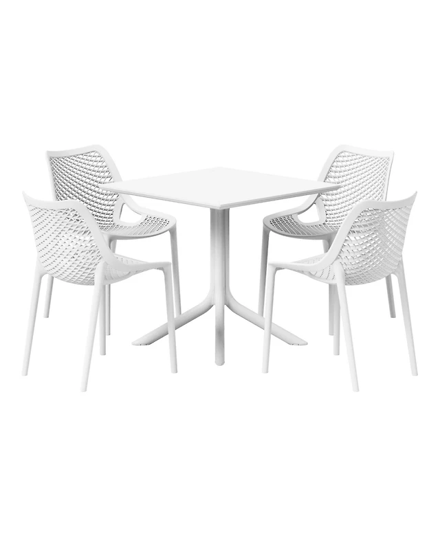 Modern 5-Piece Resin Round Patio Dining Table Set with Stackable Chairs