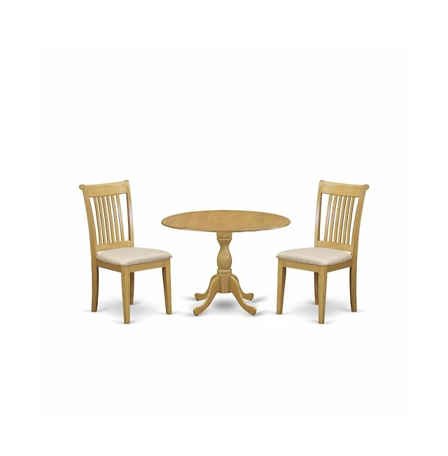 East West Furniture 3-Pc Dining Room Table Set- 2 Dining Chairs with Linen Fabric Seat and Slatted Chair Back - Drop Leaves Dining Table