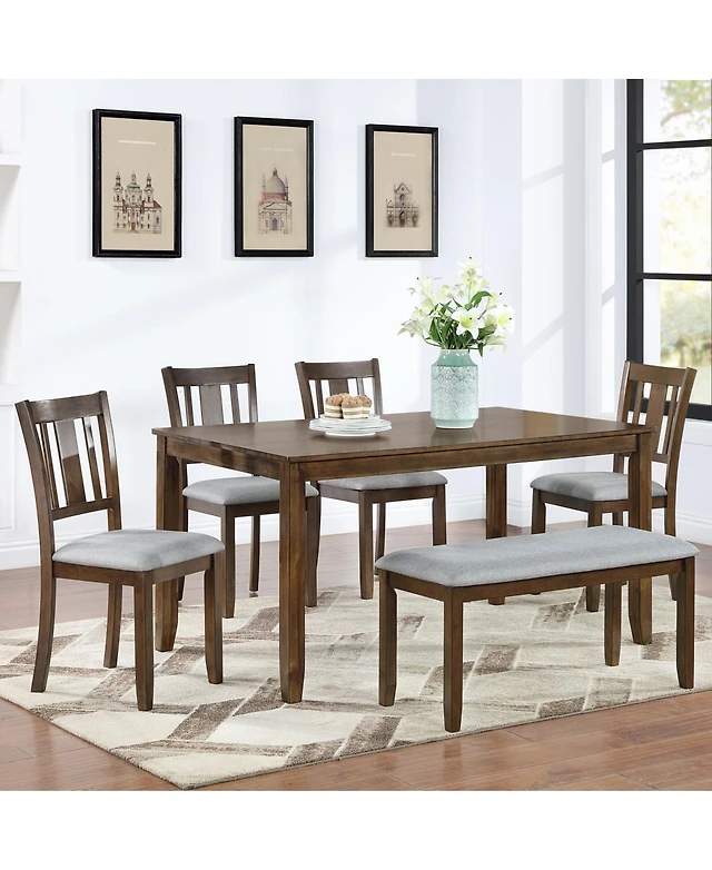 East West Furniture 6-Piece Stylish Dining Table Set an Excellent Cement Color Dining Table Top and Cement Color Dining Room Bench and 4 Excellent Lin
