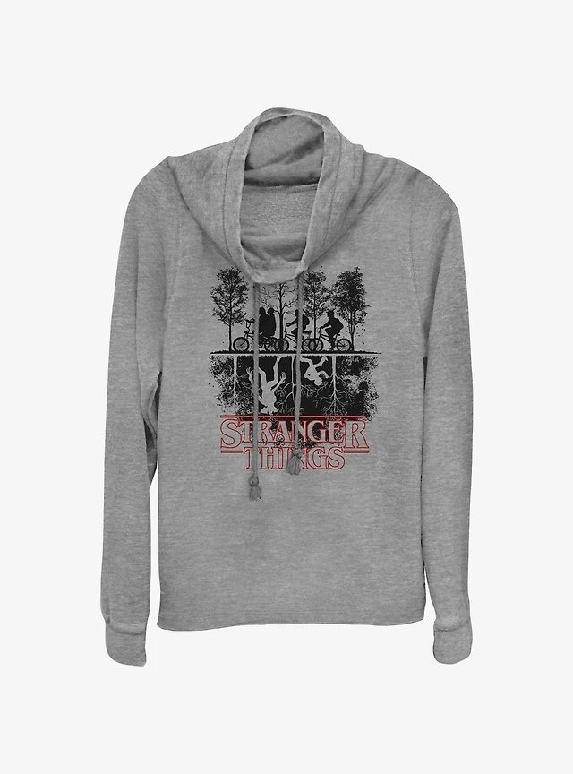 Stranger Things Forest Photo Logo Cowl Neck Long-Sleeve Top