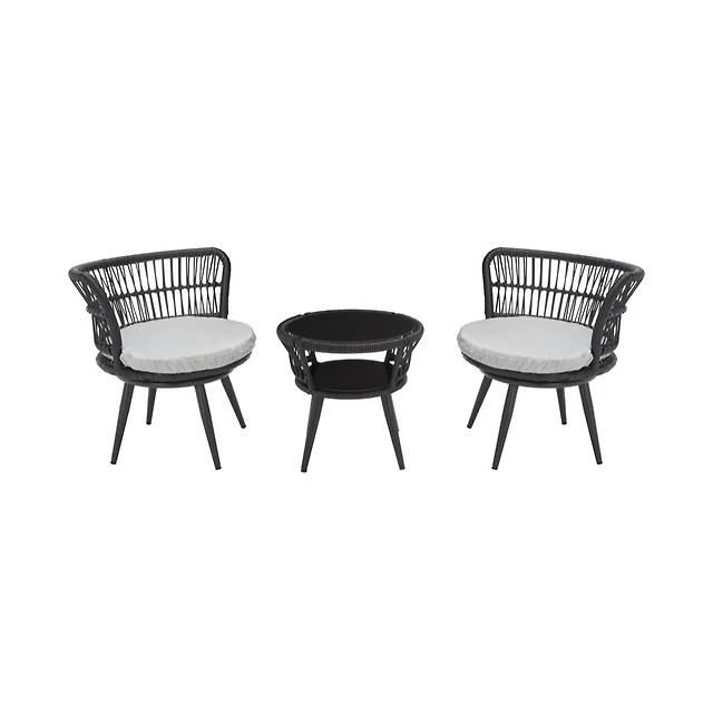 3 Pcs Furniture Set Table & 2 Chair Patio Wicker Rattan W/Cushion