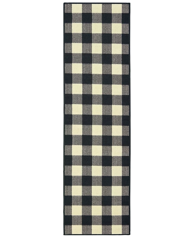 Oriental Weavers Marina 1932K Black/Ivory 2'3" x 7'6" Indoor/Outdoor Runner Area Rug