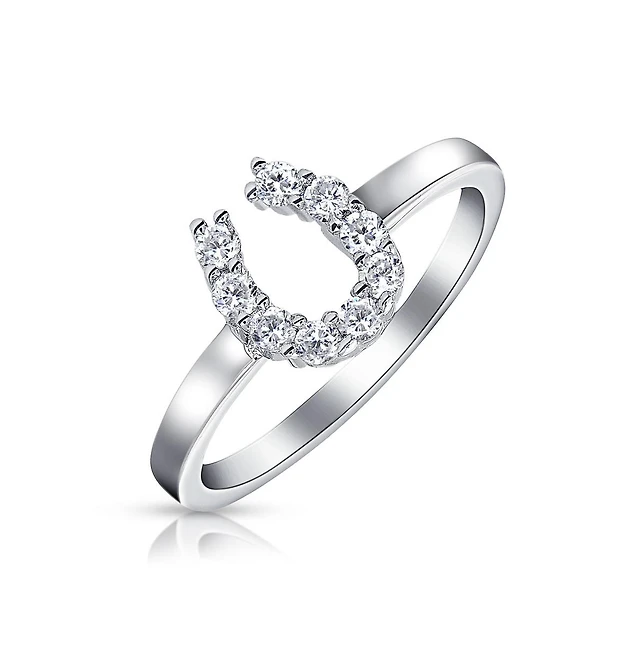 Bling Jewelry Good Luck Cubic Zirconia Pave Cz Equine Cowgirl Equestrian Horseshoe Ring .925 Sterling Silver