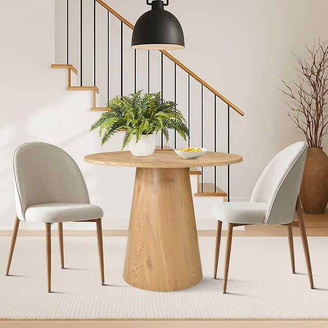 gaomon 47" Round Dining Table Set for 4 to 6, Farmhouse Kitchen Table with Wooden Top and Pedestal Base, Circle Dinner Table