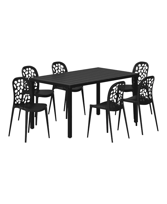 7-Piece Outdoor Metal Rectangle Patio Dining Table Set With Stackable Side Chairs