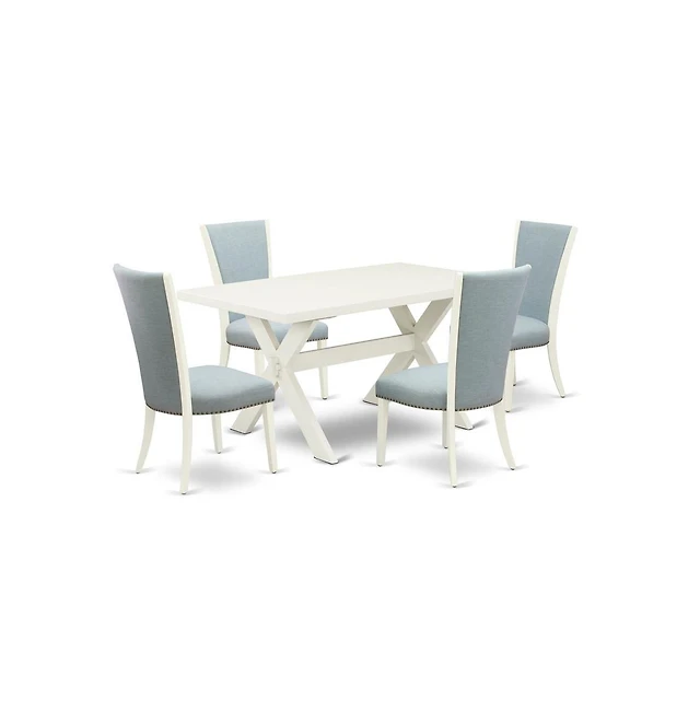 East West Furniture 5-Pc Dinette Room Set - 4 Parson Dining Chairs and 1 Modern Rectangular Linen White Wooden Dining Table with High Chair Back