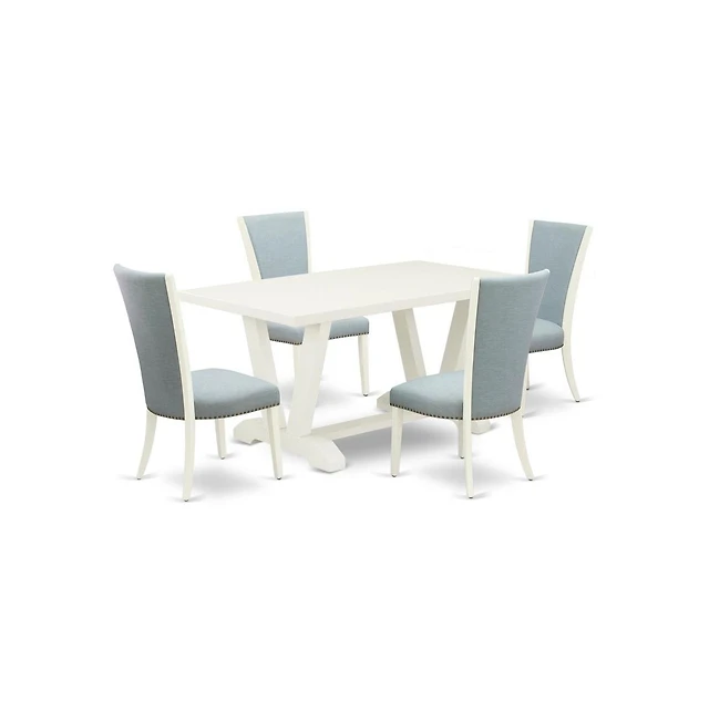East West Furniture 5 Pc Dining Table Set Offers a Wood Dining Table and 4 Parson Chairs with Brown Color Linen Fabric, Medium Size Table with Full Ba