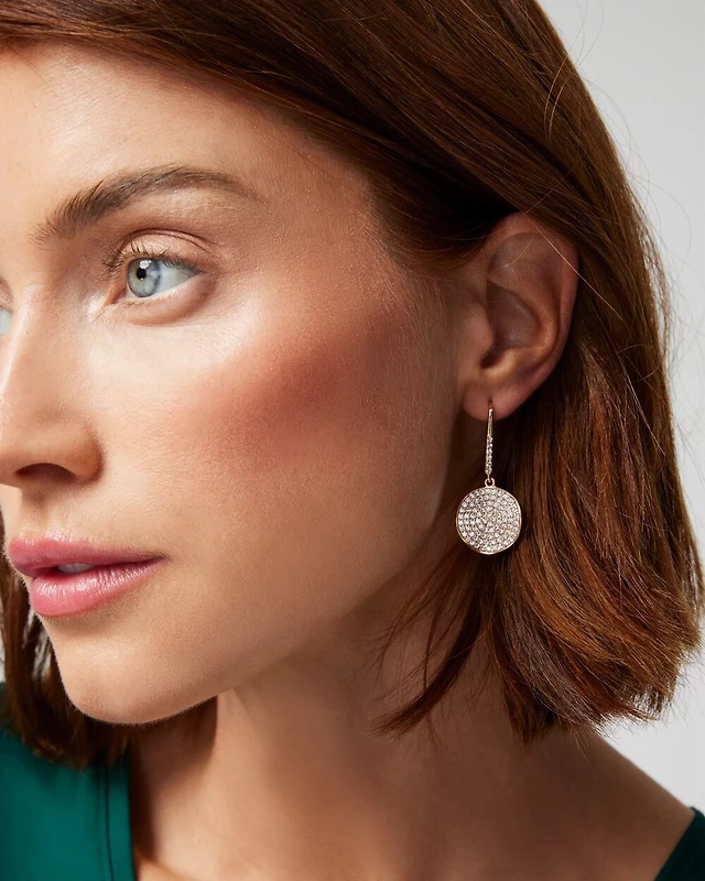 Gold Pave Disc Drop Earrings