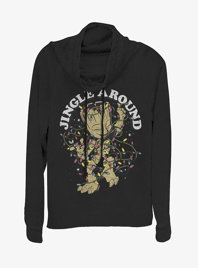 Marvel Guardins Of The Galaxy Jingle Groot Cowl Neck Long-Sleeve Girls Top