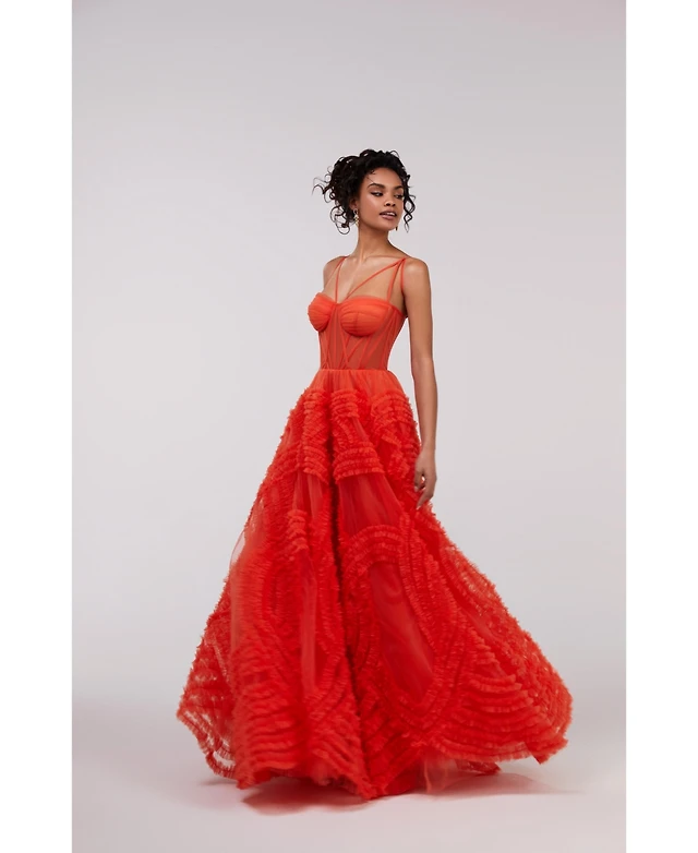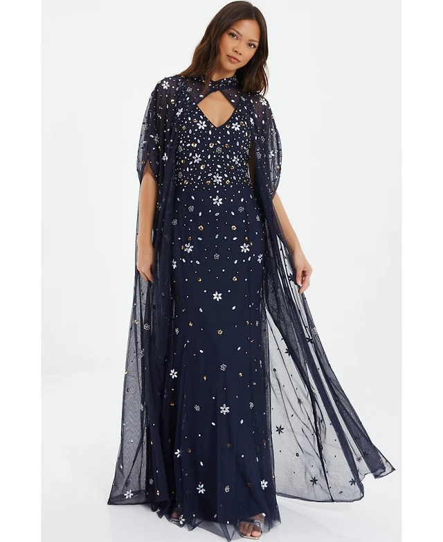 Nocturne Women's Linen Brode Detailed Sweetheart Maxi Dress
