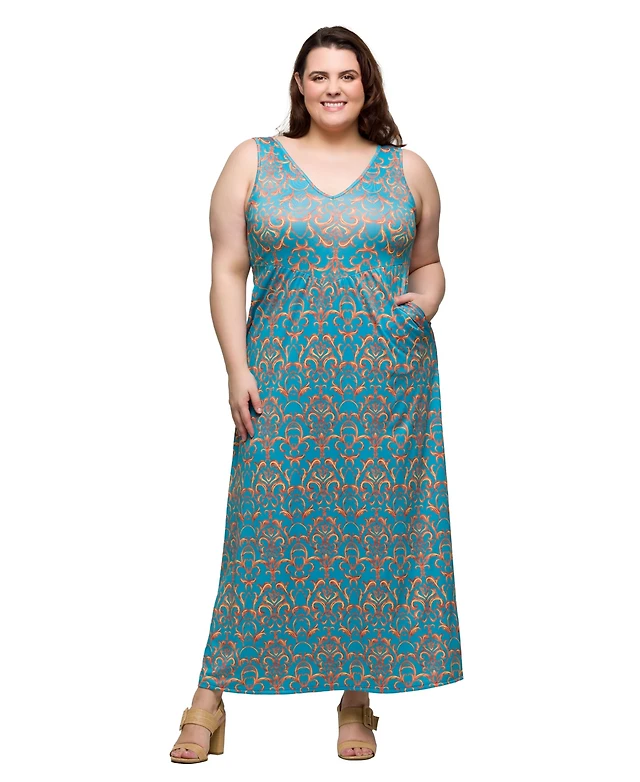 24seven Comfort Apparel Plus Sleeveless V-Neck Maxi Dress with Pockets