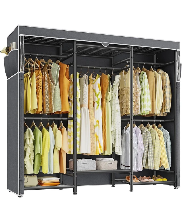 Raybee Clothes Rack with Cover, 81" H Clothing Racks for Hanging Clothes, Portable Closet with Wheels, Side Pockets and Adjustable Feets for Bedr