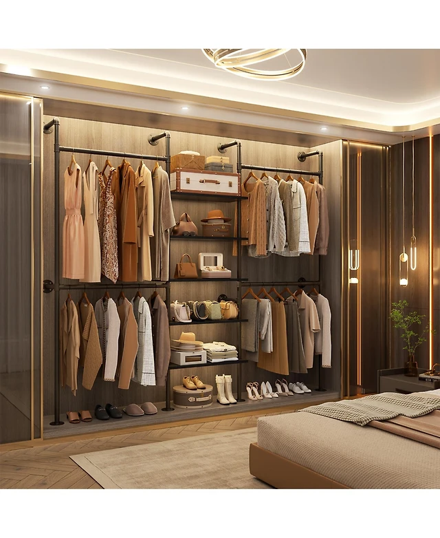 Yigii Industrial Metal Pipe Wall Garment Rack with 4 Bars