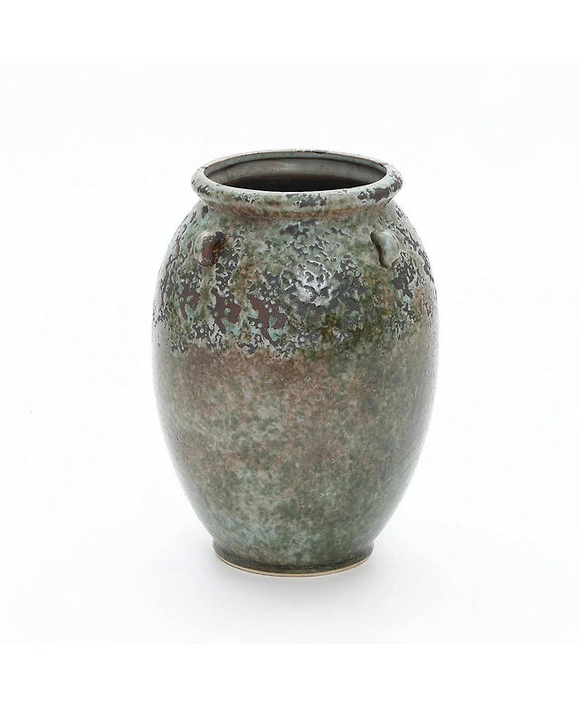 LuxenHome Antiqued Terracotta Jar Vase, Rustic 17-Inch Green & Brown Flower Holder