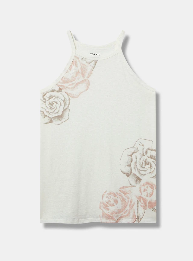 Embroidered Crinkle Chiffon Crochet Lace Trim Tank