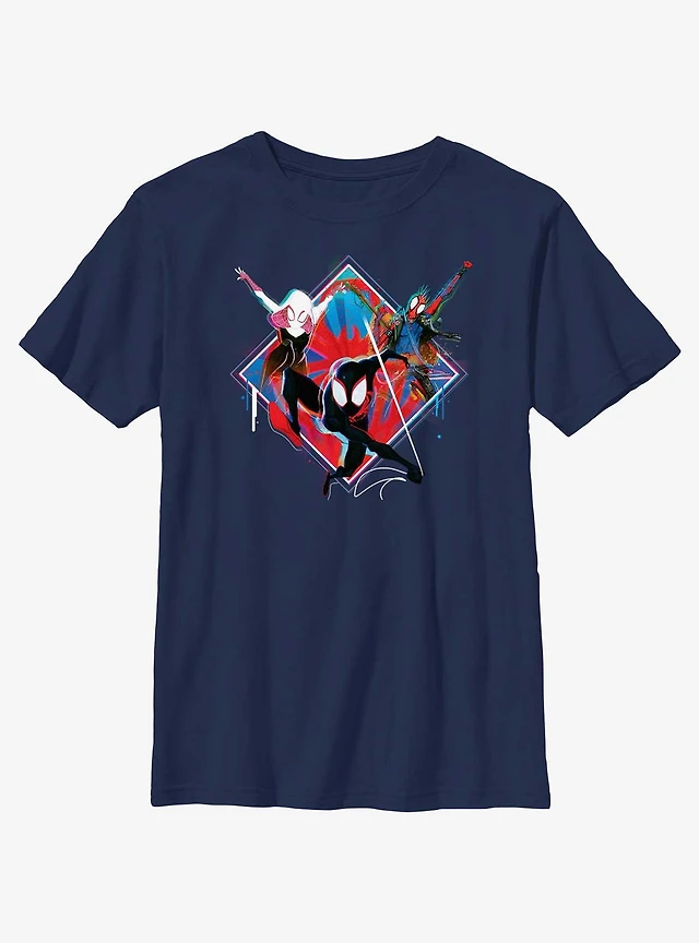 Marvel Spider-Man: Across The Spiderverse Trio Spider-Gwen Miles Morales and Spider-Punk Youth T-Shirt