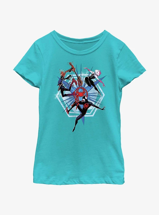 Marvel Spider-Man: Across The Spiderverse Trio Badge Spider-Punk Miles Morales Spider-Gwen Youth Girls T-Shirt