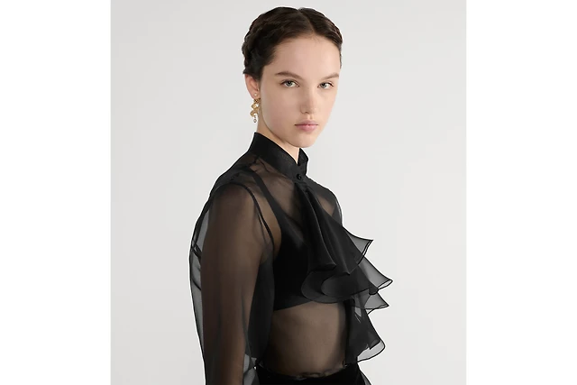 Transparent Blouse with Removable Ruched Collar